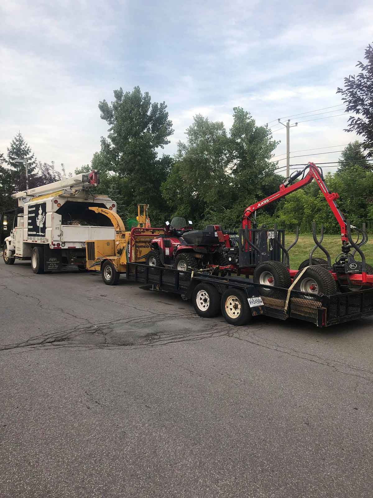 In order to provide you with quality services at competitive prices, we are equipped with specialized and safe heavy machinery that is regularly inspected and maintained in top condition. Whether it’s for tree trimming, pruning, tree felling, deforestation or stump removal, we have state-of-the-art equipment. Trucks, cranes and buckets, chippers and more improve our team’s efficiency and save you time and money.